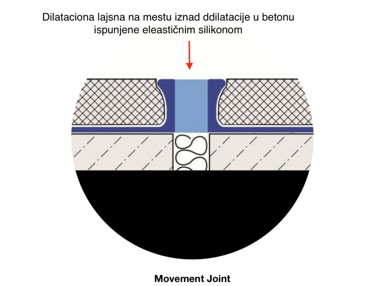 Na uglovima od 90 stepeni koji predstavljaju “Weak point” lajsne su obavezne kako bi se sprečilo pucanje kamenog tepiha usled stresa napregnutosti.
